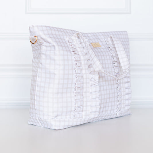 WholesaleNude Plaid Ruffled Nylon Tote Bag