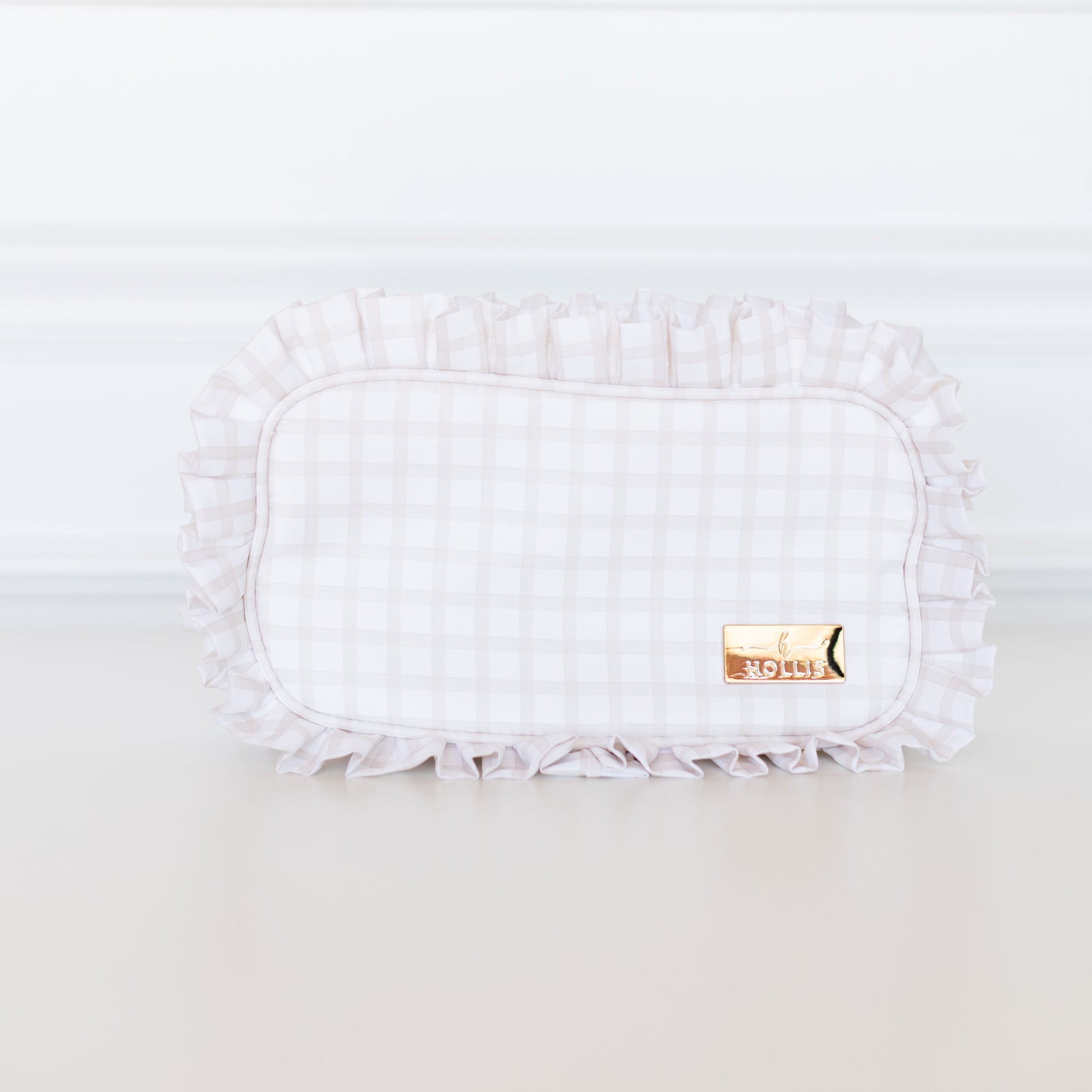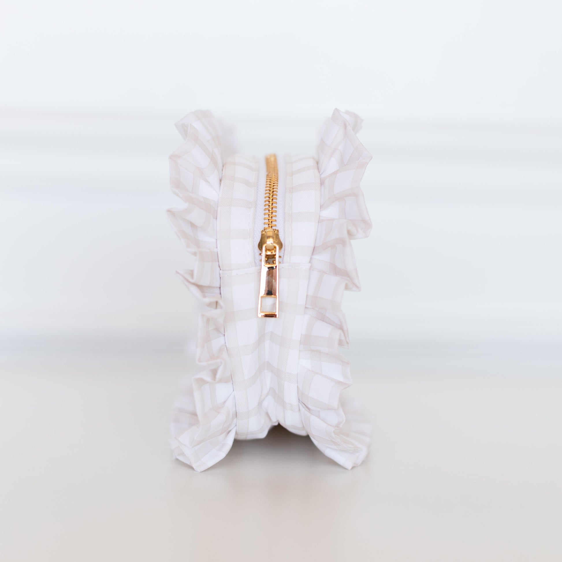 Introducing our brand-new nylon large pouch, designed to keep your essentials organized and easily accessible. Featuring a stylish ruffled edge detail, this pouch is as chic as it is functional. Perfect for storing makeup, toiletries, or any small essentials, this pouch offers both convenience and elegance in one.